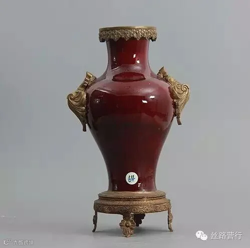 清代郎红釉镶铜观音瓶