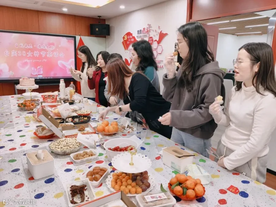 欢乐的游戏过后,大家走进布置精致的茶话会现场,映入眼帘的是琳琅满目的水果拼盘、各式各样的点心美食,色香味俱全,女神们暂时放下手头的工作,品尝着新鲜的水果与美食,现场洋溢着轻松愉悦的氛围。