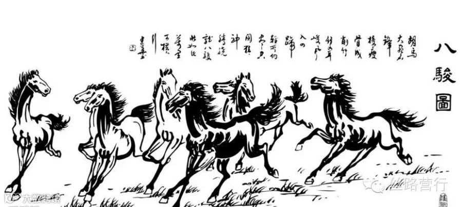 “八骏图”是从六朝起就很流行的一幅画。画的是周穆王游昆仑山时为之驾车的八匹良马。