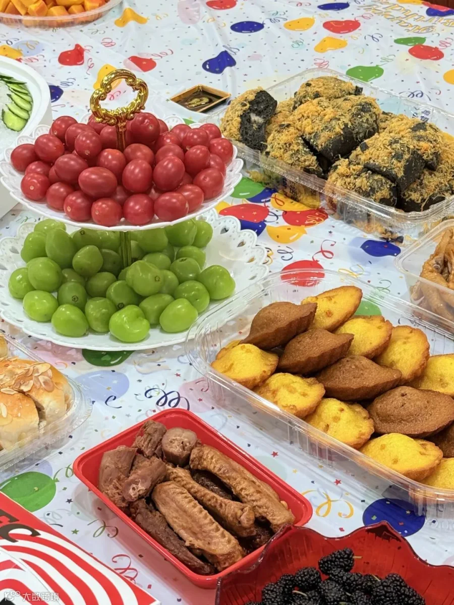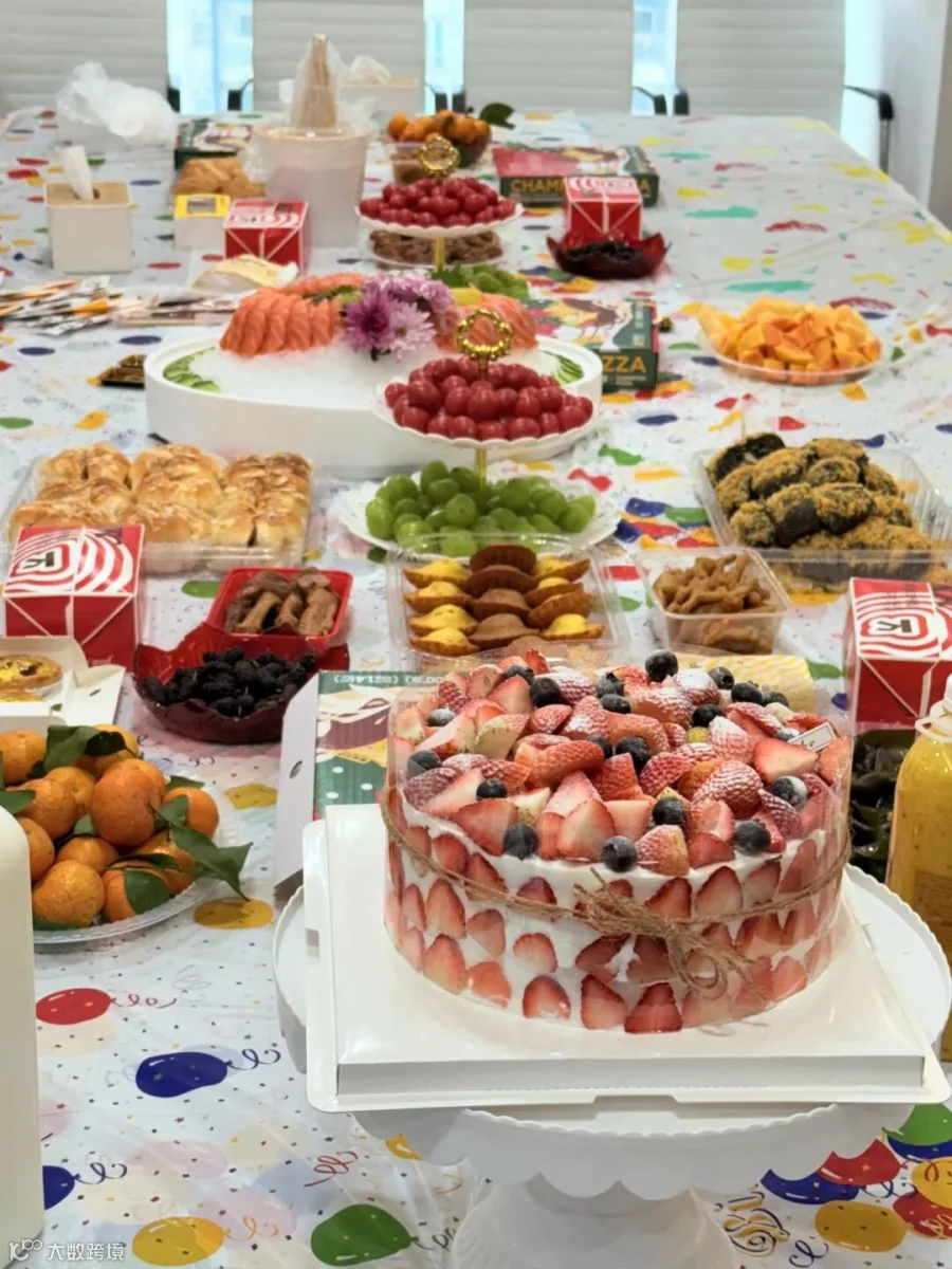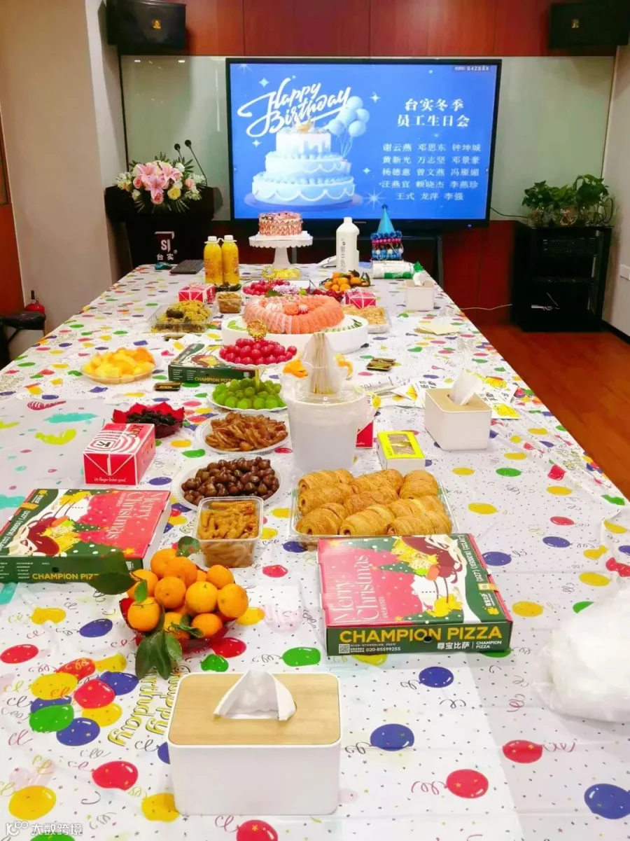 伴随着台实家人们的歌声,寿星们一起齐心协力切下了第一块蛋糕,大家共同分享着美味的蛋糕与其他美食,现场一片欢声笑语!