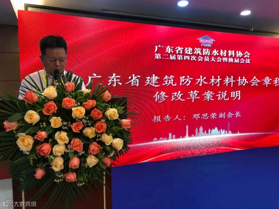 朱冬青秘书长代表中国建筑防水协会对会议召开以及即将诞生的广东省建筑防水材料协会新一届理事会领导机构表示祝贺,并发表致辞演讲。他对广东防水企业今年以来在疫情防控与复工复产中做出的贡献表示感谢,指出今年虽有疫情影响,但行业依然取得了不错的发展形势。