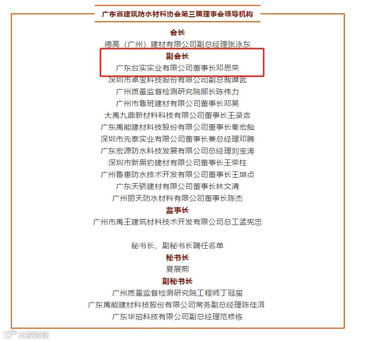 此次连任广东省建筑防水材料协会副会长单位及获得多项协会荣誉是对台实的大力肯定。继往开来,台实定将一如既往响应协会号召,助力广东建筑防水行业在高质量发展以及国内国际双循环新发展格局中取得更大成绩和突破。