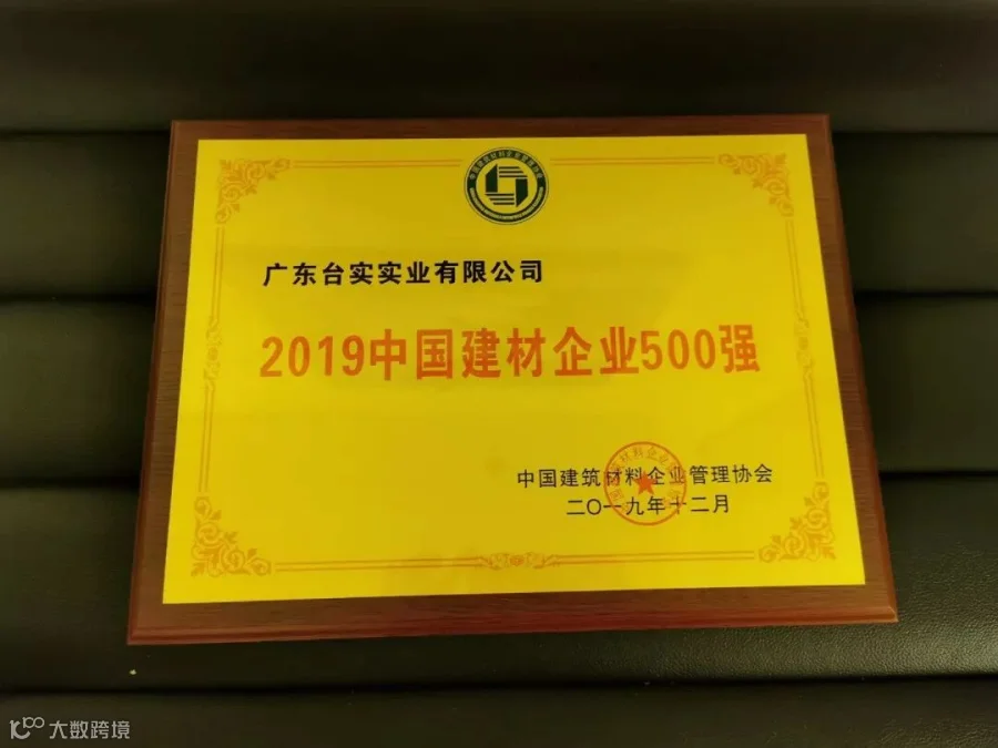 2019年12月9日-11日,由中国建筑材料企业管理协会主办的“2019中国建材企业发展论坛暨2019中国建材企业500强系列活动发布会”在北京隆重召开。会上,广东台实实业有限公司以雄厚的综合实力强势入选榜单,荣获“2019中国建材企业500强”荣誉称号。