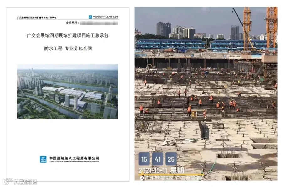 目前,广交会展馆四期扩建项目防水工程正在有条不紊地进行中,地下室底板防水施工即将完成。底板采用的是TS-34高分子自粘胶膜防水卷材,一层铺设即可达到一级防水设防等级,台实将持续保障工程保质保时顺利完成。