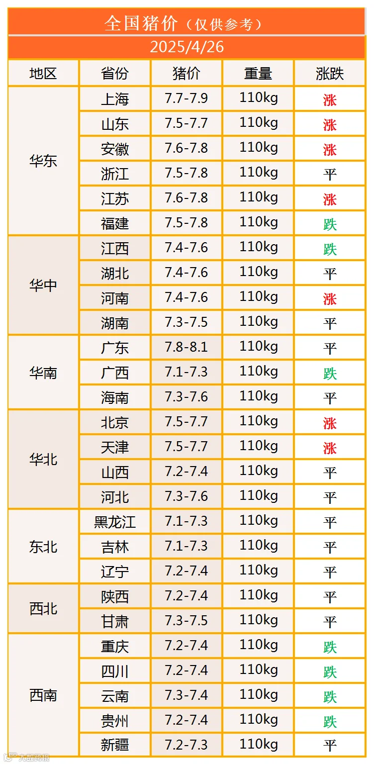 明日猪价2025年4月26日猪价信息