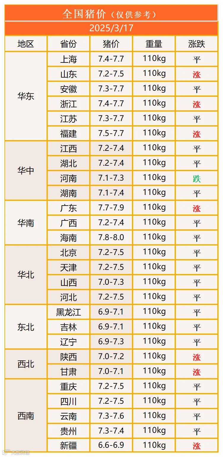 明日猪价2025年3月17日猪价信息