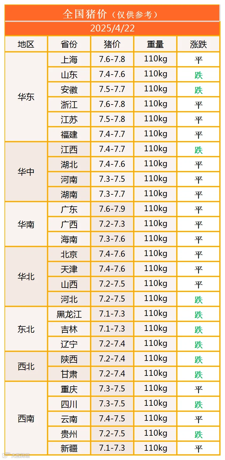 明日猪价2025年4月22日猪价信息