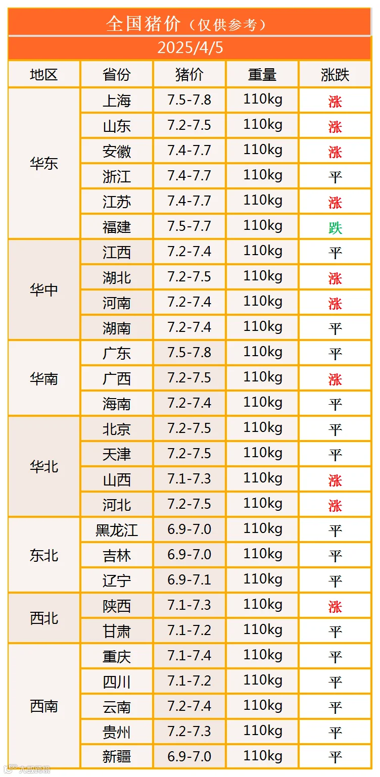明日猪价2025年4月5日猪价信息