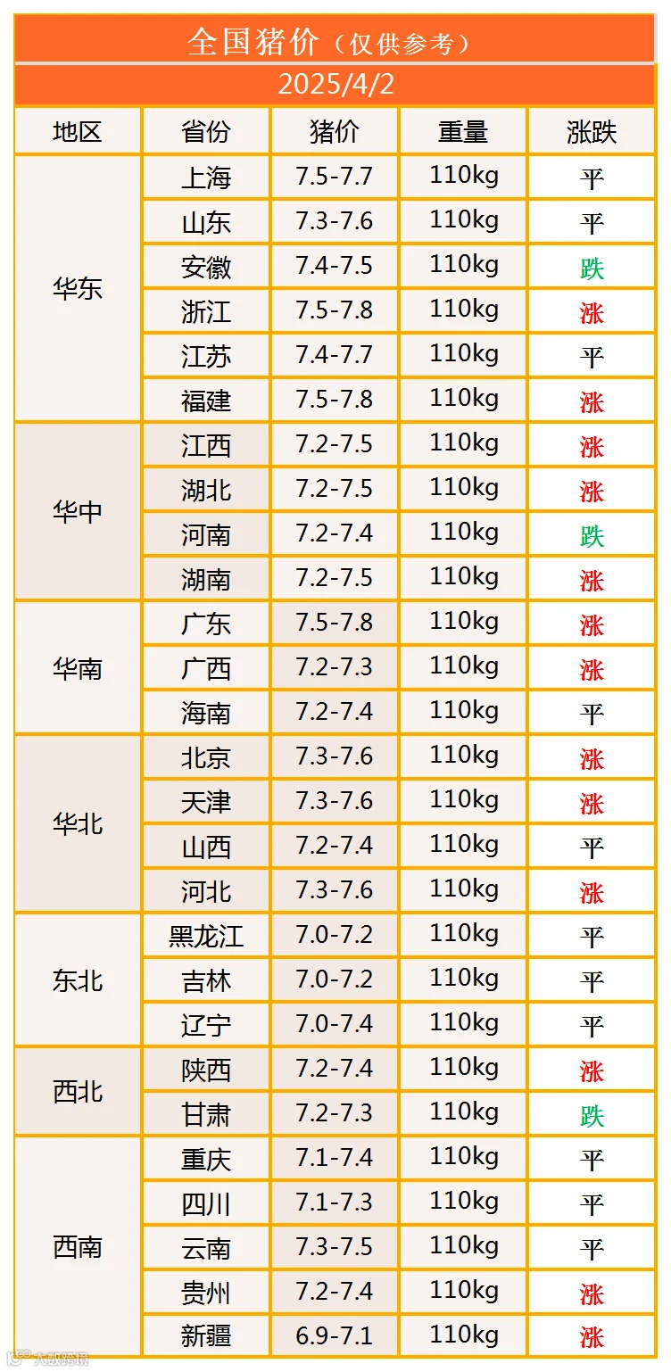 明日猪价2025年4月2日猪价信息