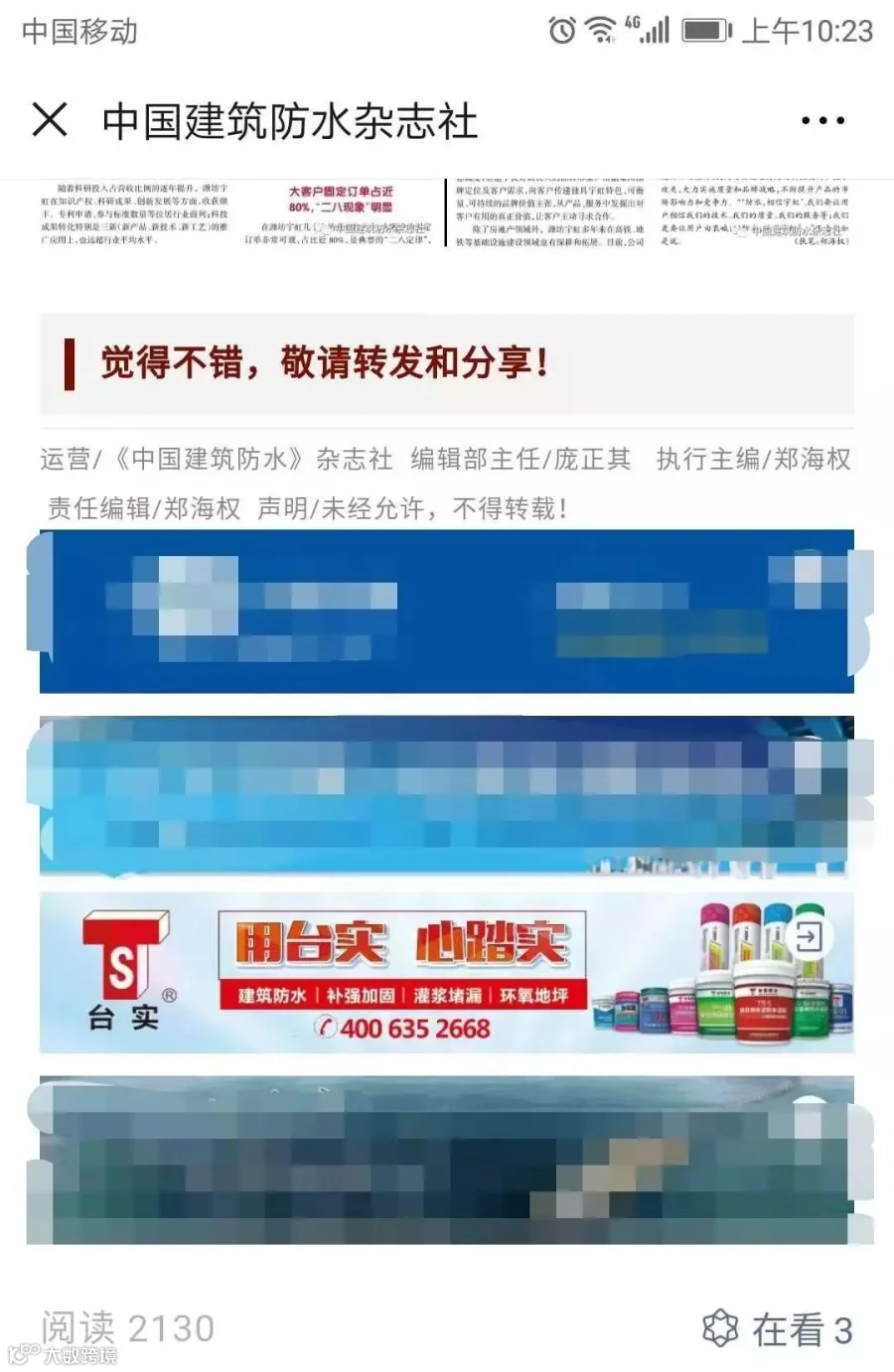 台实与中国建筑防水杂志建立合作关系,助力推进台实防水修缮航母加速前进。