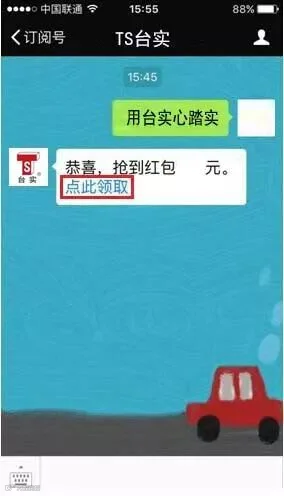 3、 然后点击公众号回复的链接中的领取红包提示领取红包,即可顺利拿到端午节活动红包了(一个微信号只能抢一次,红包有限,先到先得,活动时间持续半个小时,当天上午11点结束),没错就是这么容易简单,还没关注台实防水公众号的小伙伴们,动动手指头,关注来一波,拿好小板凳,端午节一起来抢红包!抢完红包之后可以把抢到的红包截图发送至台实微信公众号分享您的红包记录哦。