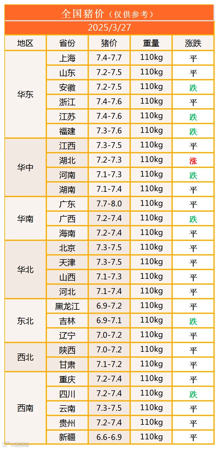 明日猪价2025年3月27日猪价信息