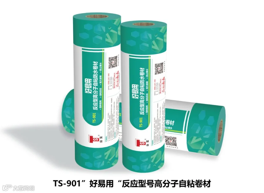 高分子自粘防水卷材以优质沥清,合成橡胶,增粘剂,抗老化剂等为基料,通过优化配方,制成超高粘结性能的耐久反应型自粘高密封胶,以强力交叉层压膜为表面材料的至密自粘卷材。
