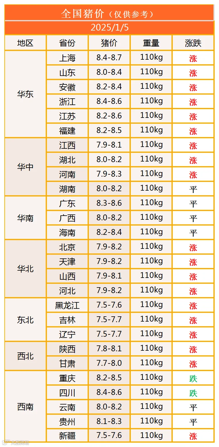 明日猪价2025年1月5日猪价信息