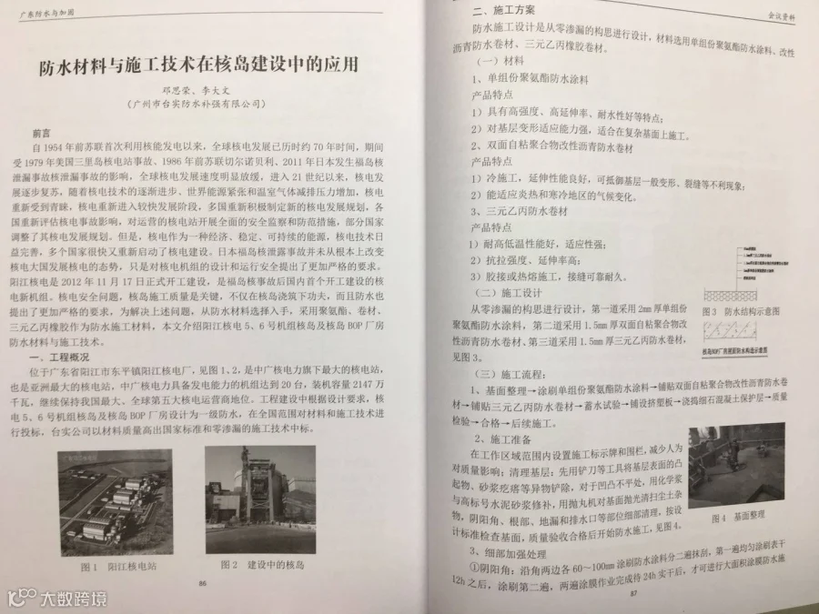我司优秀论文《防水材料与施工技术在核岛建设中的应用》于会刊刊登