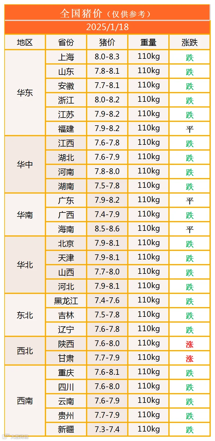 明日猪价2025年1月18日猪价信息
