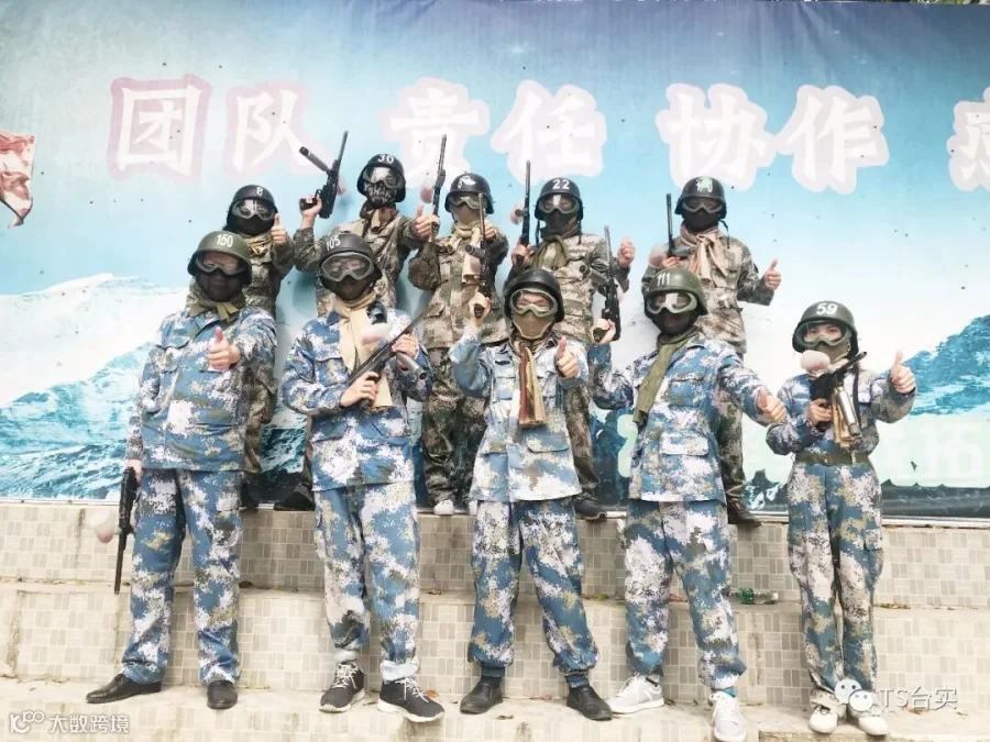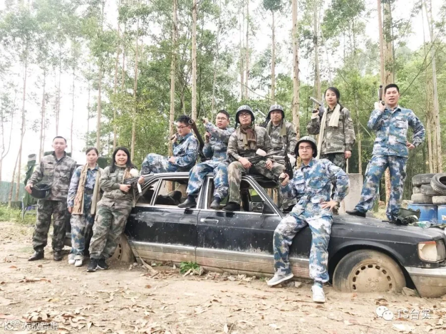 丛林中,台实民建事业部营销精英们头戴钢盔,身背子弹包,手持冲锋枪在枪林弹雨中穿梭,隐蔽,出击,针锋相对,战况激烈而刺激,上演着一场智慧与勇气的真人CS对战。
