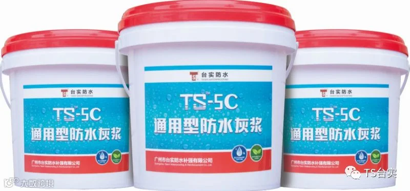 TS-5C通用型防水灰浆是由聚合物乳液(聚丙烯酸酯及多种添加剂)和无机粉料(普硅水泥、石英砂及多种添加剂)复合而成的双组份防水涂料。其涂膜既有橡胶材料的弹性,又有无机材料的耐久性和耐候性,可配制各种彩色涂层。