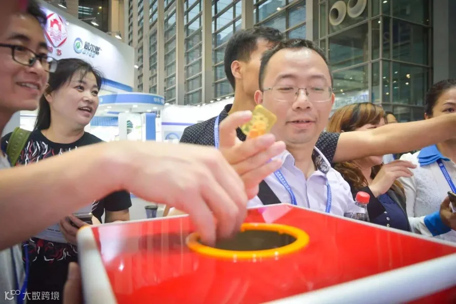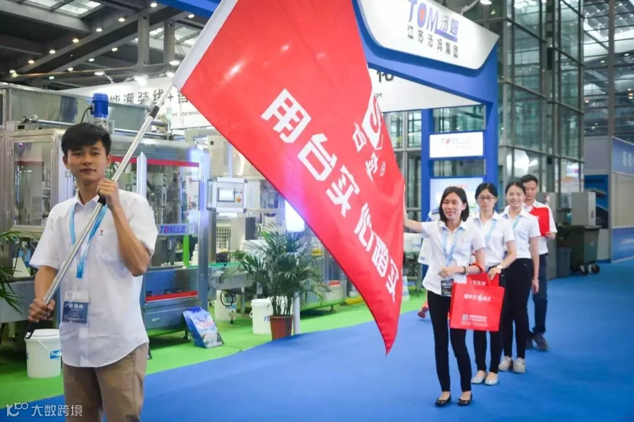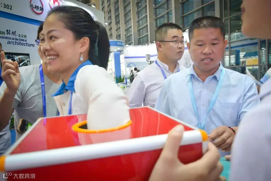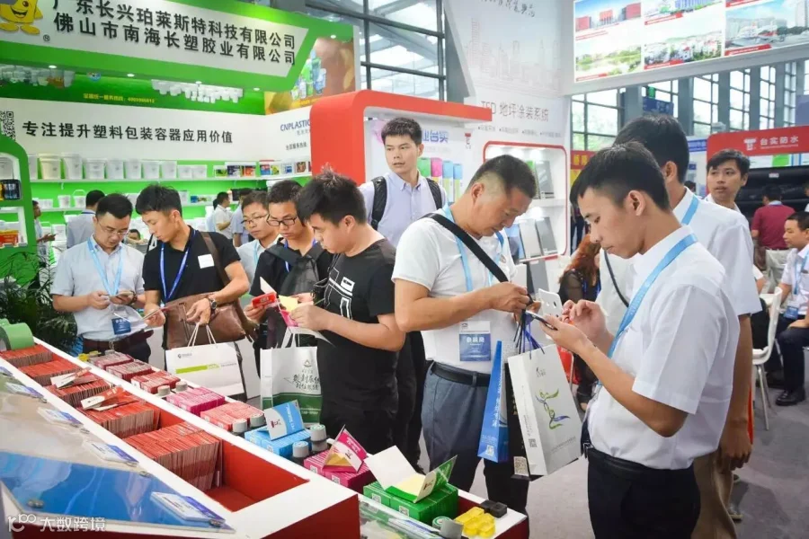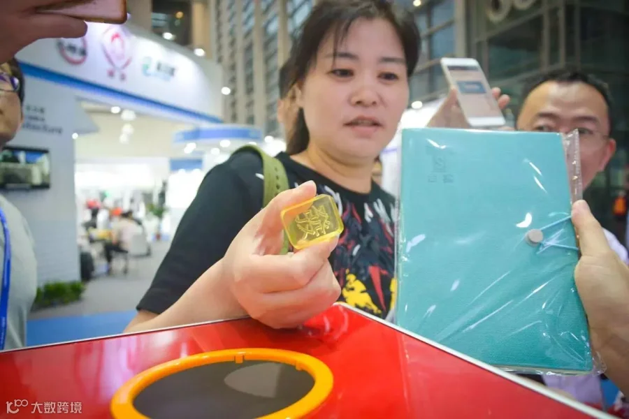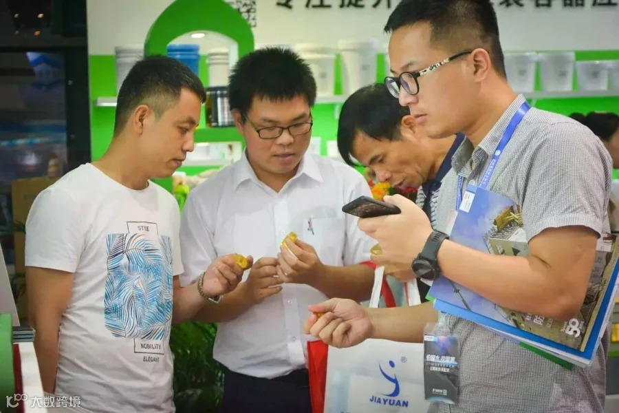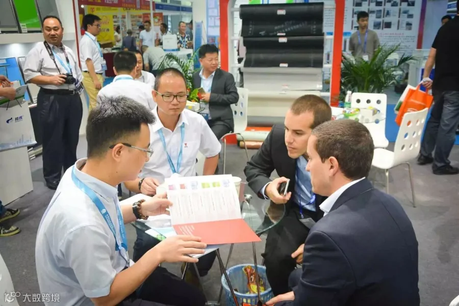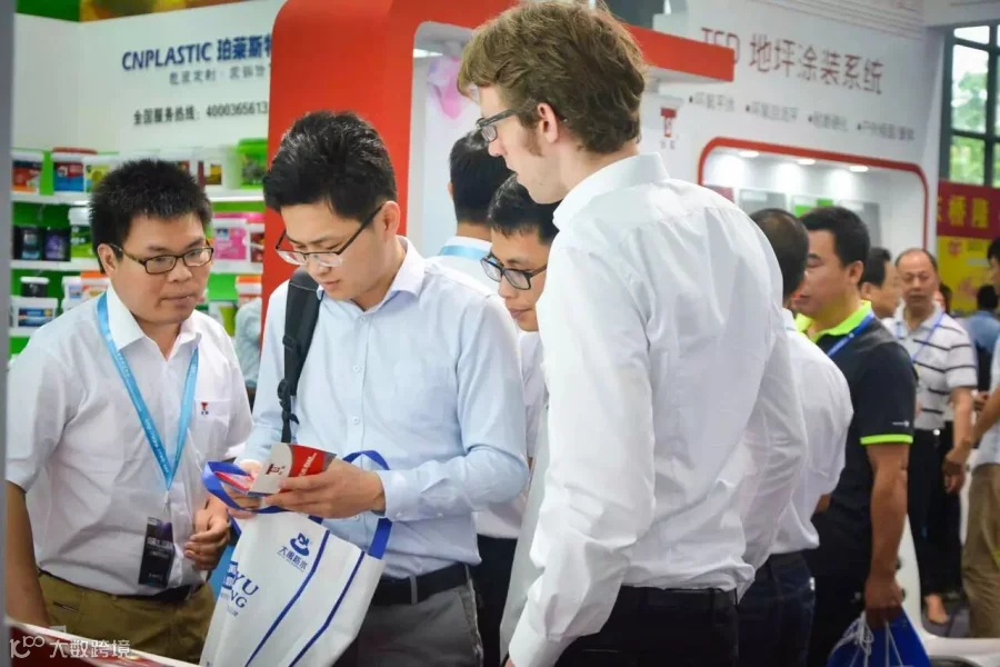 ①样品展台吸引参观者驻足询问