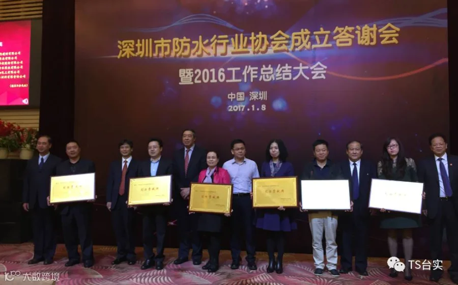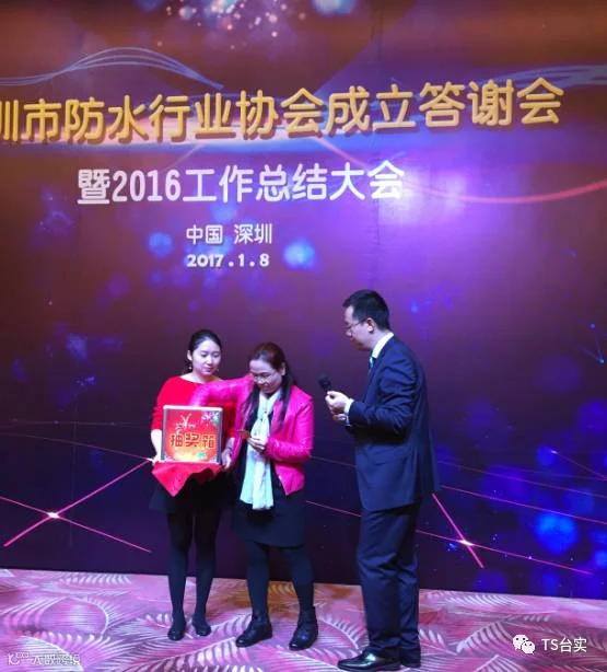 2017年1月8日下午,主题为“不忘初心,逐梦前行”的深圳市防水行业协会成立答谢会暨2016年工作总结大会在深隆重召开。行业相关领导、专家及嘉宾、媒体等共计250多人次参加会议。台实公司代表董事长邓思荣、副总经理陈琼芳等人参加了这次大会,并满载荣誉归来。