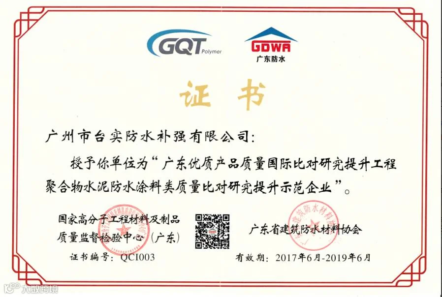 为进一步推动广东省产品质量比对工作向纵深发展,以微观产品质量提升带动产业提升从而促进广东产品质量整体提升,由广东省质量技术监督局、广州市质量技术监督局共同部署,并由广州质量监督检测研究院和广东省建筑防水材料协会联合广东省防水材料标准化技术委员会(GD/TC 83)就广东省范围内生产的“聚合物水泥防水涂料”产品开展了调查和比对研究。