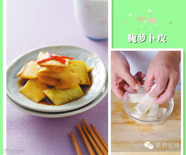 白萝卜皮的风味比较辛辣,一般常常被削除,非常可惜呢!其实削掉的白萝卜皮也别丢掉,只要用少许盐抓一抓,就能降低辛辣味,略洗后凉拌或拌炒,就能变成一道好吃的料理。