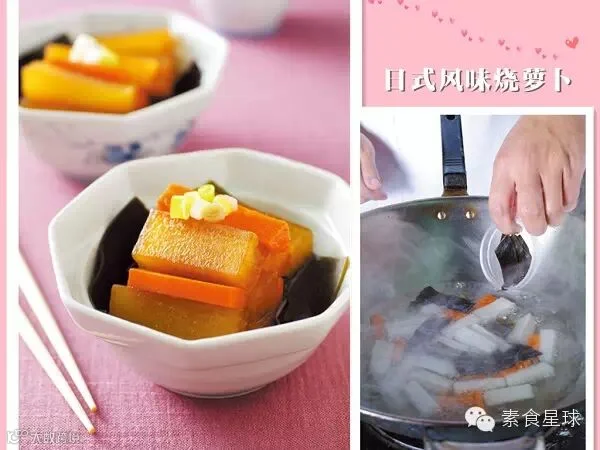 别拘泥四四方方的切法,善用萝卜的圆形,切成半圆的块状好看又迅速。