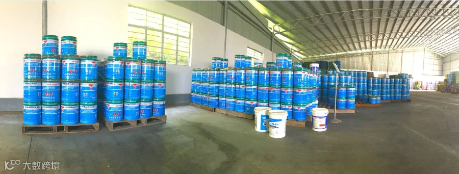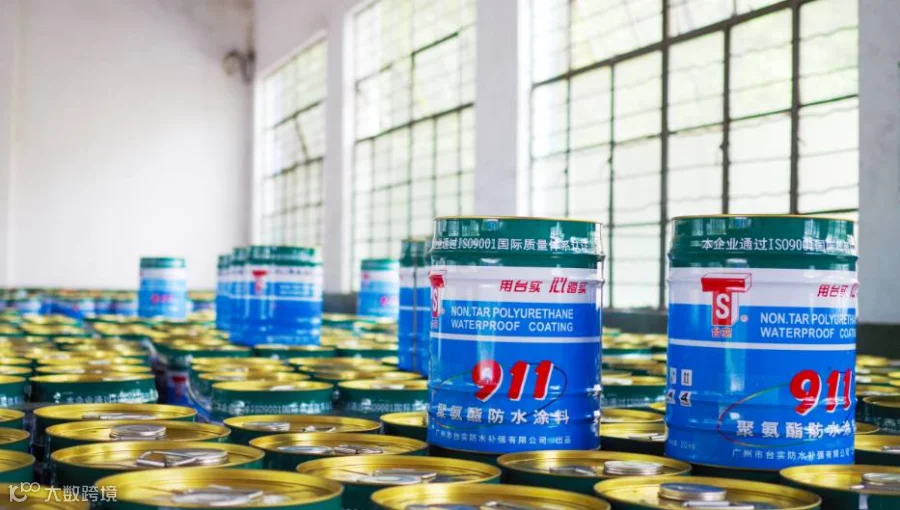 台实广州生产基地位于白云区钟落潭良田管理区钟陈路,毗邻广州著名风景区帽峰山,自2001年建成以来,堪称行业典型“花园式模范工厂”。拥有现代化防水涂料生产线、地坪漆生产线,生产包括防水补漏、补强加固、环氧地坪、喷涂聚脲等材料,年产共计 4 万吨。我司自主知识产权产品TS系列聚氨酯防水涂料获得“广东省名牌产品”称号。