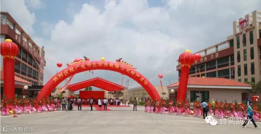 台实是一家综合性的大型建材生产企业,创建二十多年来,广州和韶关生产基地先后拔地而起,拥有行业顶尖的全自动卷材成型线、涂料生产线和地坪生产线。台实韶关生产基地的投产将满足广东乃至全国防水材料的需求,将继续秉着“诚信、创新、超越、共赢”的企业理念,肩负造福社会的责任,致力于为中国建筑防水事业贡献自己的力量。