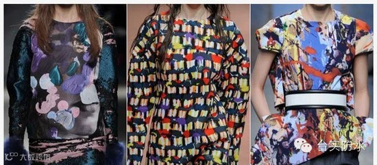 14/15秋冬,设计师为油彩素描印花采用艺术手法。绘画涂抹、泼溅和水彩纹理非常适合设计成满底图案,或像 MSGM 那样结合图片元素。