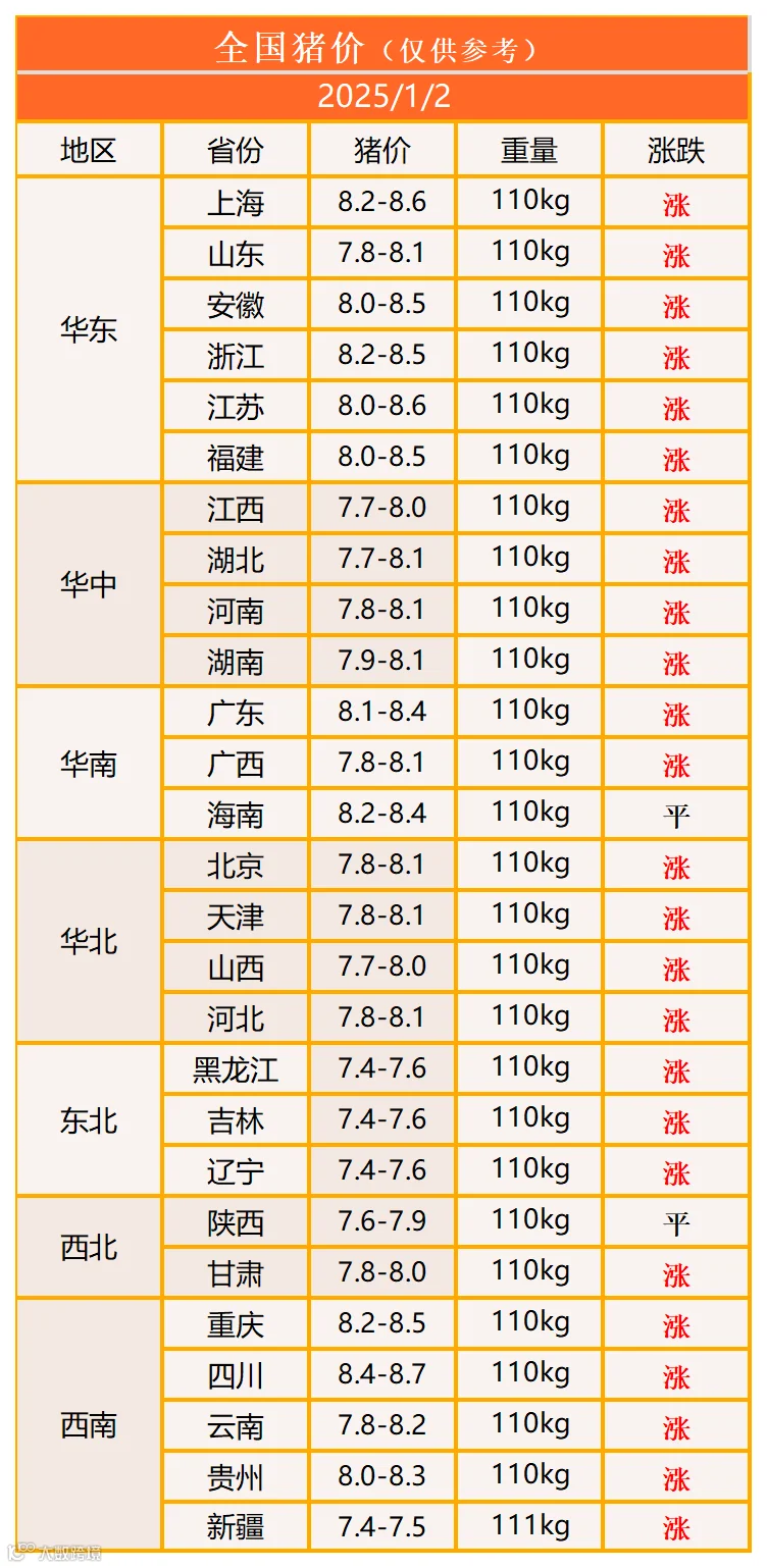 明日猪价2025年1月2日猪价信息