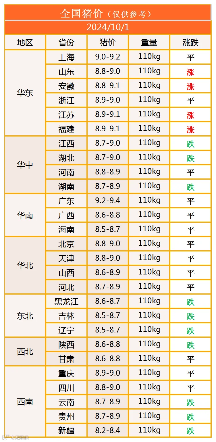 明日猪价2024年10月1日猪价信息
