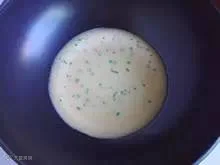 7:搅拌成没有颗粒的蛋面糊,最后撒入香葱末拌匀。