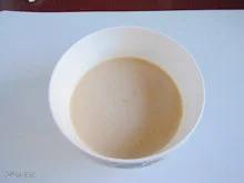 3:然后加入温牛奶,边加边用筷子搅拌。