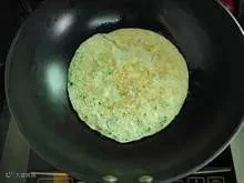 刚下锅时铺平以后不要动,底部煎熟以后,只要晃动锅,饼会自己离开锅底。