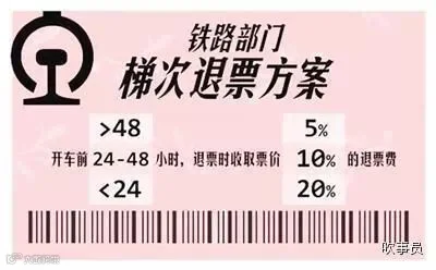 不过退票需要收取一定的手续费,目前铁路部门执行的仍是阶梯退票:票面乘车站开车时间前48小时以上的按票价5%收取手续费,24小时以上、不足48小时的按票价10%收取退票手续费,不足24小时退票的按票价20%收取。但素,如果车票乘车日期在春运期间的,退票时收取20%的退票费。
