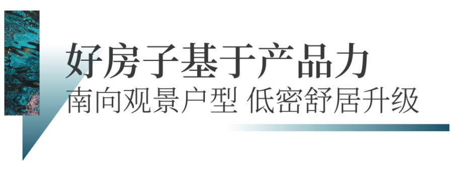 项目充分利用地块面宽>进深的特性,打造东南向纯板楼社区,以两梯两户低密尺度、一字型通透无遮挡人居格局,保证户户通风采光俱佳,扩大景观面,实现舒居升级。