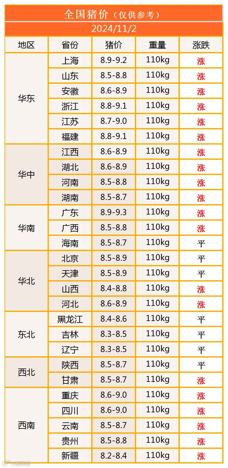 明日猪价2024年11月2日猪价信息