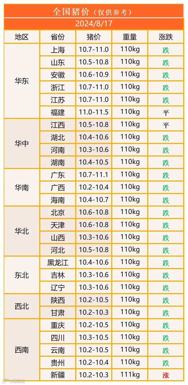 明日猪价2024年8月17日猪价信息