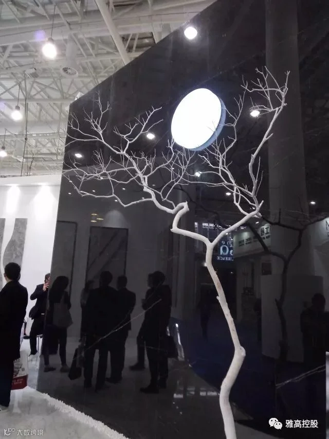 要说展会现场的吸引观众的爆款产品,非雅高控股展馆入口处黑白根构筑的“明月挂枝头”大场景莫属,高高的一明月挂枝头,配合黑白根产品的大气与灵性,婉约一幅美丽的风景画,吸引着过往的参展朋友驻足了解。