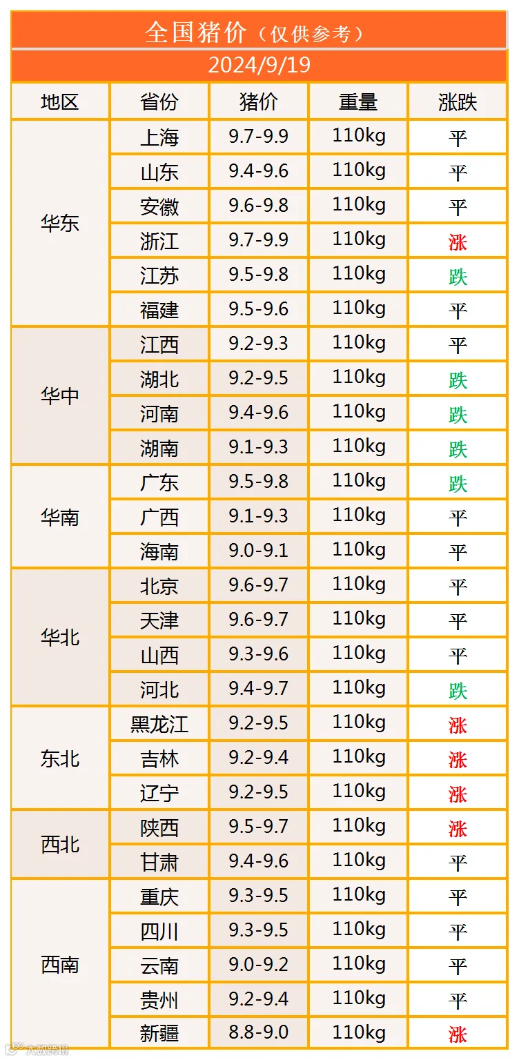 明日猪价2024年9月19日猪价信息