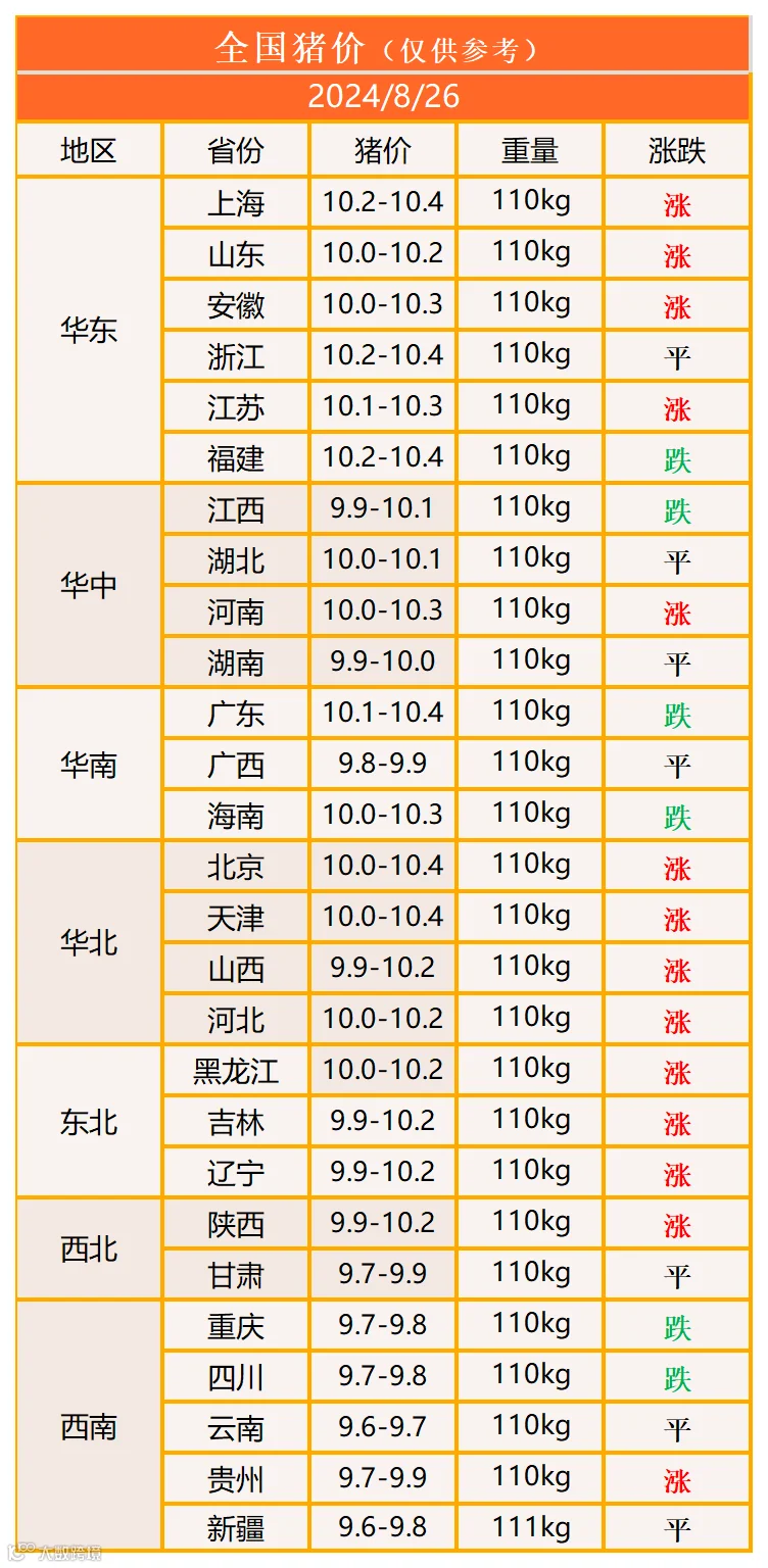 明日猪价2024年8月26日猪价信息