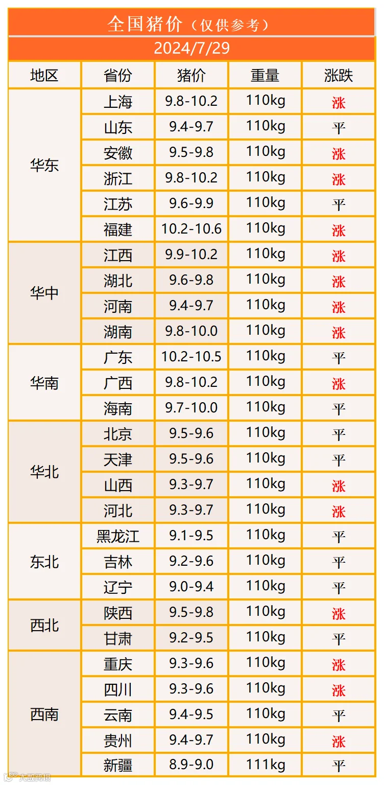 明日猪价2024年7月29日猪价信息