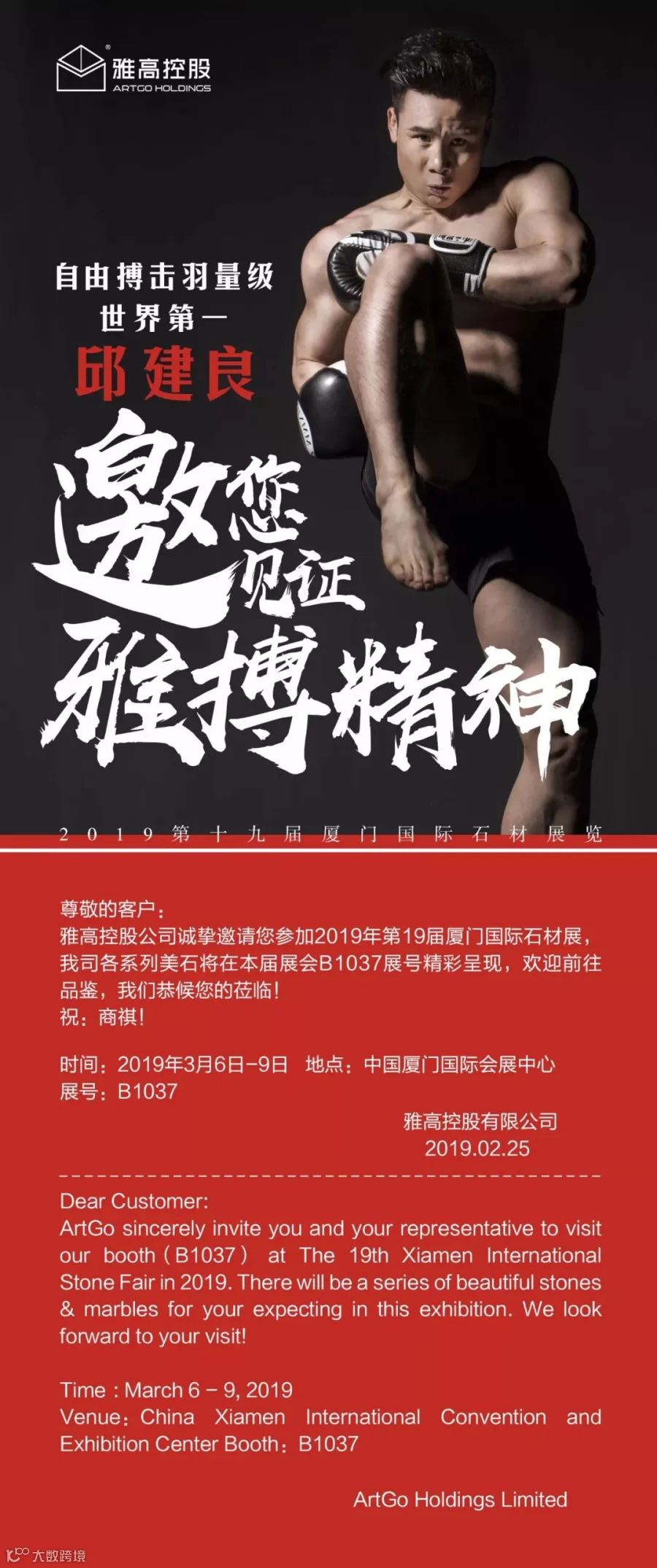 2019第十九届中国厦门国际石材展览会将于3月6日起开展,为期四天。雅高在此诚邀您莅临现场,与我们一起聚焦石材前沿资讯,同赏雅柏美石精典,共鉴雅搏精神!