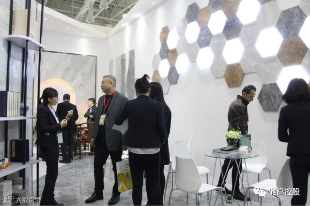 此次雅高控股借展会契机,首发多款新品,现场取得了较好的反响。灰白相间、层叠绵延的千山雪,颇显气度不凡;金黄色调、地域风格浓郁的香格里拉金,则让人体验别样风格;以白色为主、浅灰相间的雅玥白,则呈现出简约时尚之美。