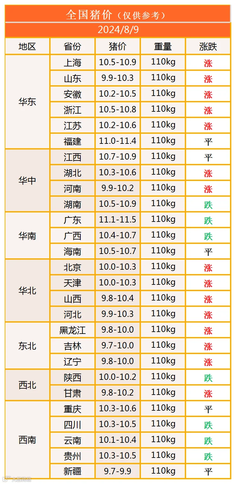 明日猪价2024年8月9日猪价信息