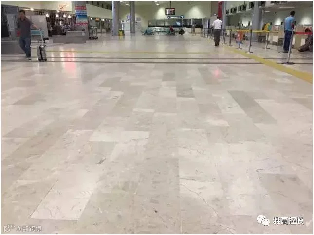 当你走进罗马意大利列奥纳多·达芬奇国际机场,看到地面上的大理石时,你会发现色差、黑斑、断裂线随处可见,可谓斑驳。