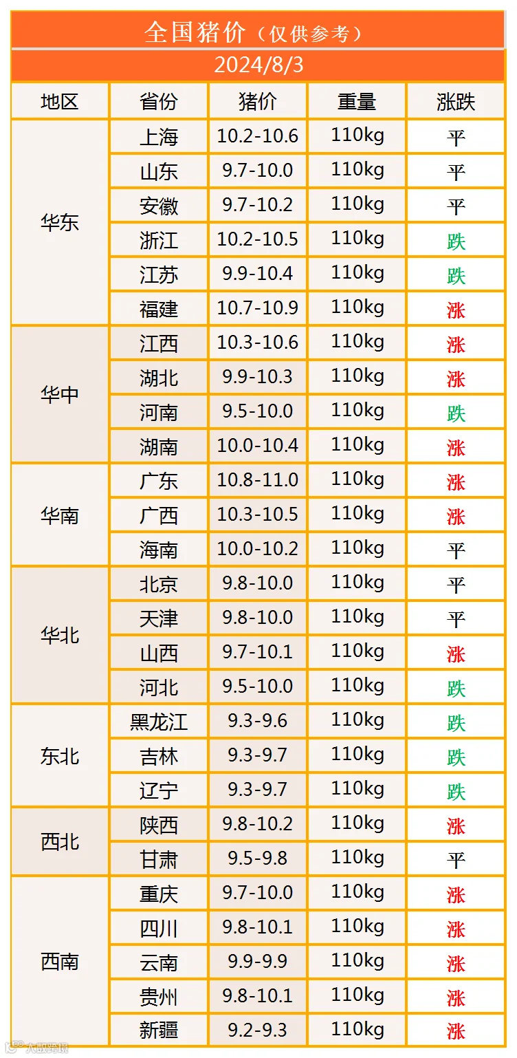 明日猪价2024年8月3日猪价信息