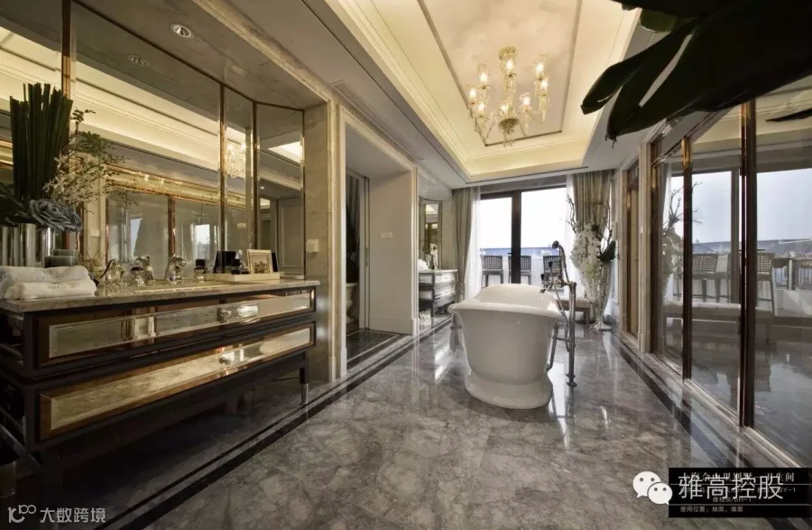 大理石的卫浴装饰,立体典雅,水与天然石材的巧妙结合给人以美的享受。金属质感的辅助器物总是能提升装饰的整体美感,让细节变得更加温暖、诱人。
