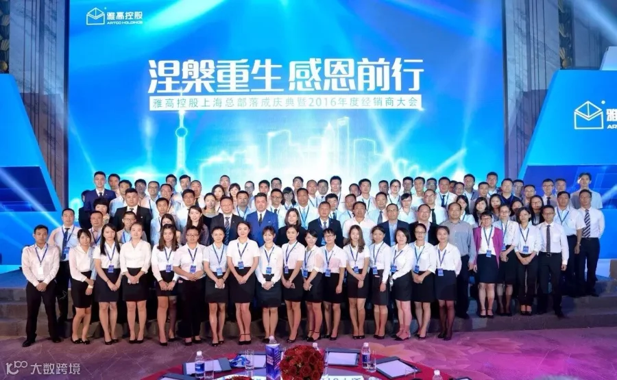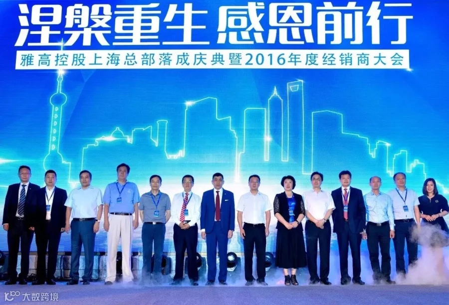 2016年9月6日,在上海万达瑞华酒店召开了雅高控股上海总部落成典礼暨2016年经销商大会。以雅高控股董事局主席——伍晶女士、雅高控股执行总裁——顾伟文先生为领导的全国雅高同仁,江苏、江西、贵州等地的政府领导,以及雅高全国的合作伙伴及经销商朋友们参加了会议。此次会议的规模空前、气势宏伟,并得到了到场嘉宾的一致好评,新团队,新面貌,雅高通过这次大会以全新的姿态展现在大家面前,涅槃重生,感恩前行,大会取得了圆满的成功。